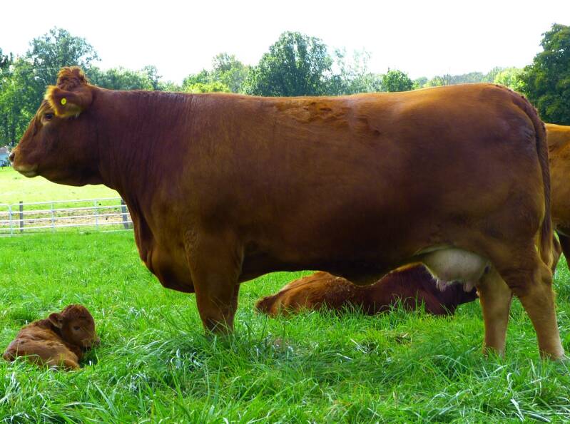 This family goes way back to the fullblood cow GSLF Polled Luv, an Oklahoma Fuel daughter we bought from Elmgrove Limousin and lovingly called "Moose" because of her size. Not her height but her body volume is still present in this family today.